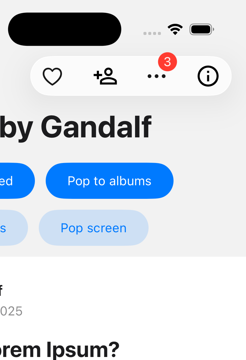 On iOS 26+, the header right items can also be collapsed into an overflow menu by the system when there is not enough space to show all items. Note that custom elements (with type: 'custom') won't be collapsed into the overflow menu.